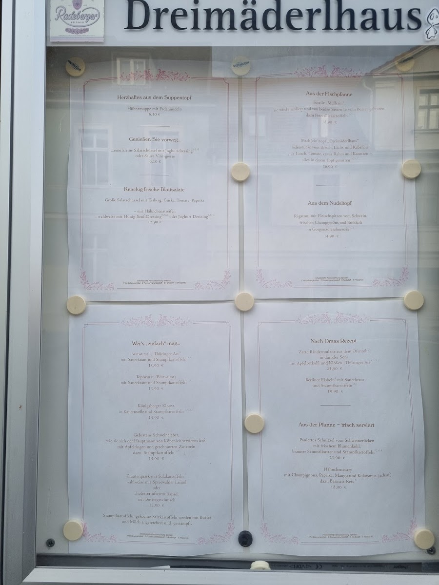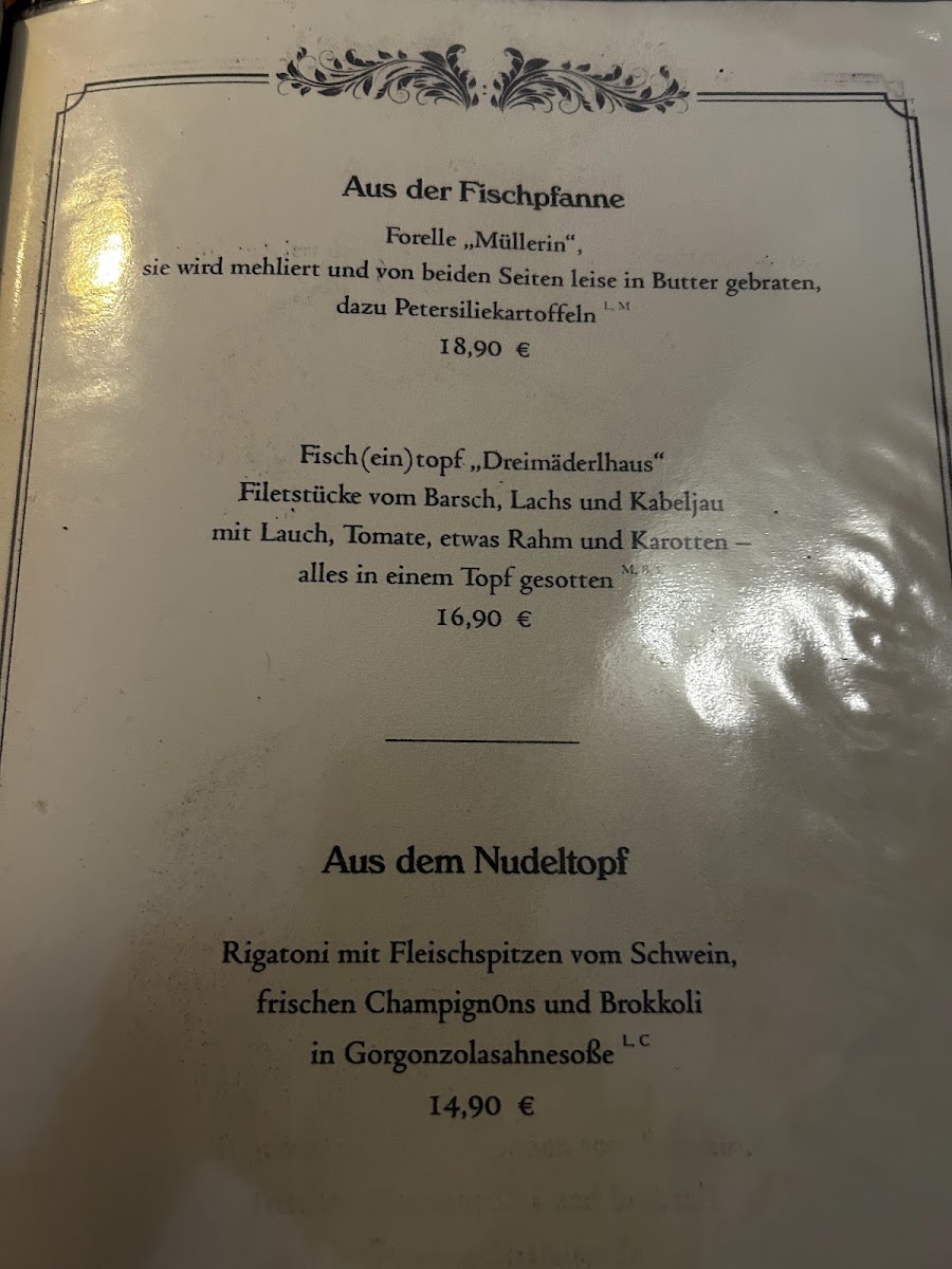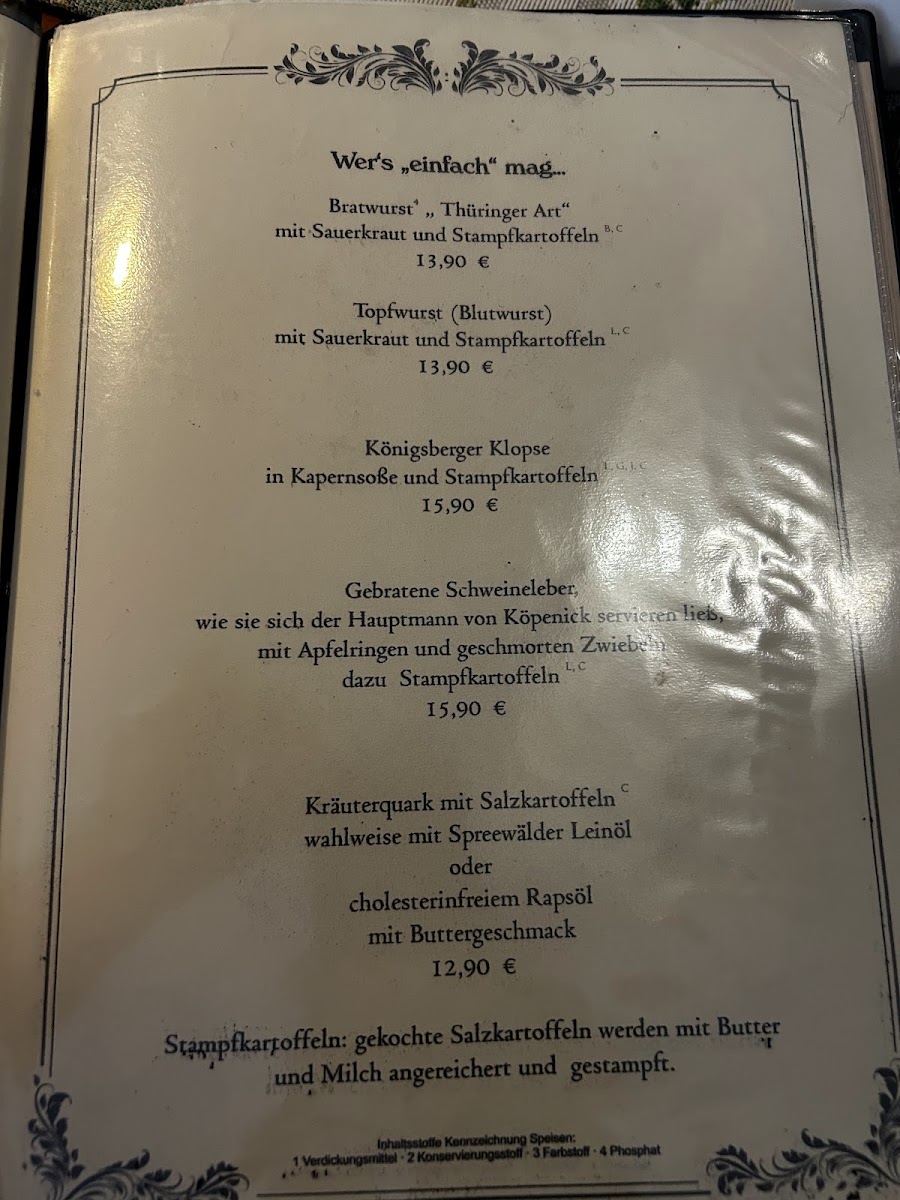 The menu at Dreimäderlhaus in Potsdam offers a selection of classic German dishes that embrace the comforting and hearty flavors of traditional home cooking. Expect well-portioned meals that feel just right for a relaxed lunch or a cozy dinner, where the focus is on simple, satisfying fare rather than elaborate presentations.